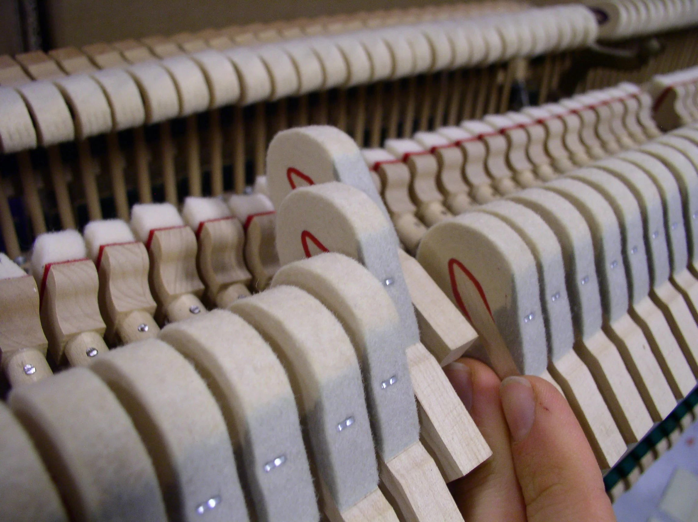 In the process, sample hammers are taken from your piano and sent to a hammer factory where a master craftsman carefully measures and creates a set of custom-made hammers designed specifically for your piano.